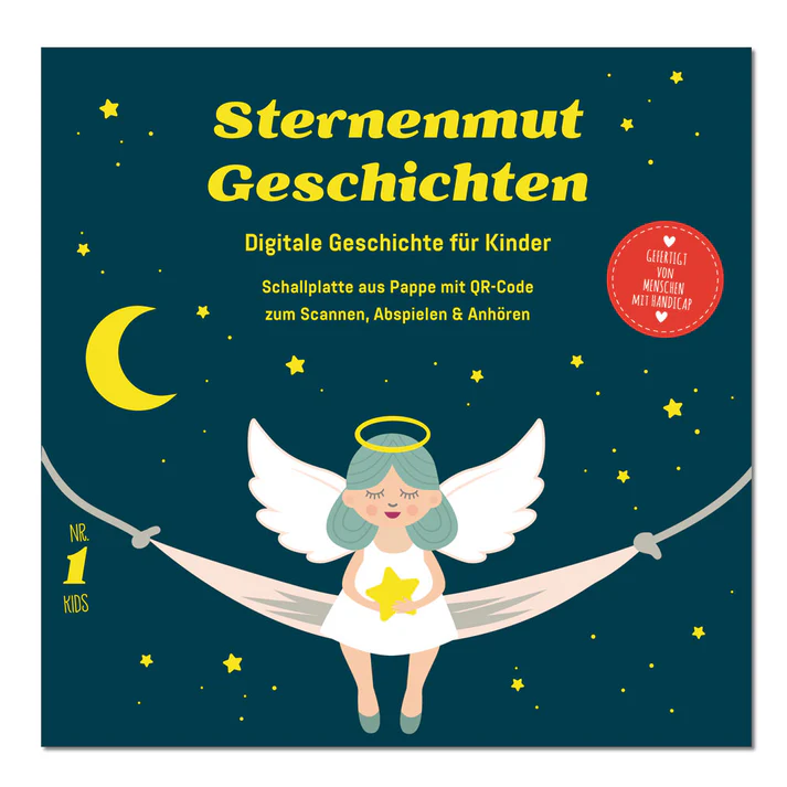 Mit den Sternenmut Einschlafgeschichten verschenkst du nicht nur Fantasie, Mut und Geborgenheit, sondern unterstützt auch Inklusionsprojekte, bei denen Menschen mit und ohne Handicap die Geschichten und Verpackungen mit Hingabe gestalten.